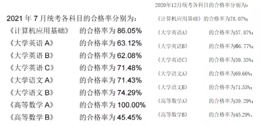 且历年来,大学语文的合格率均在70%以上,意味着参加网教统考的考生超过三分之二都合格了。